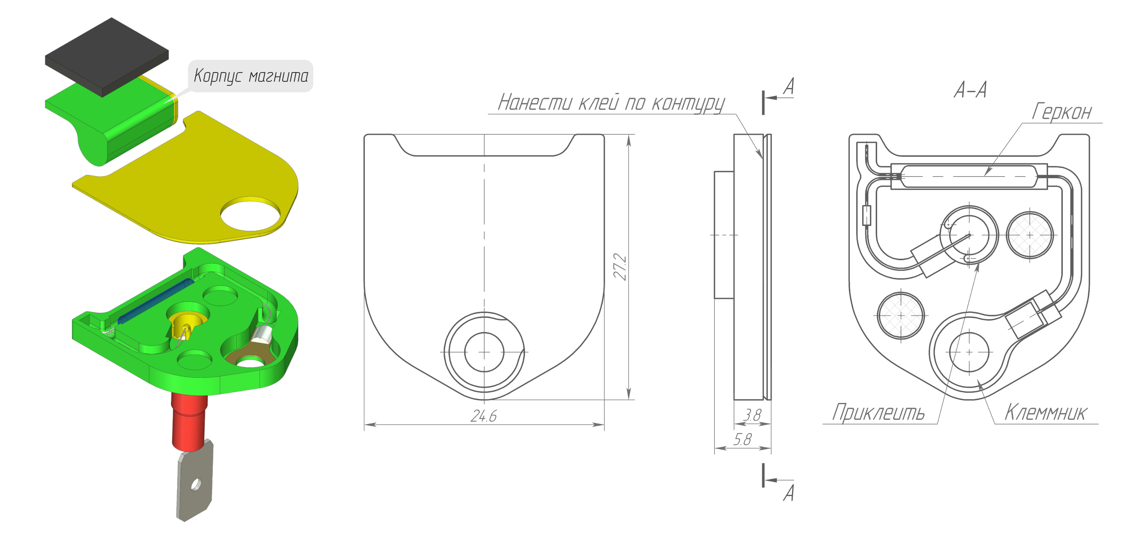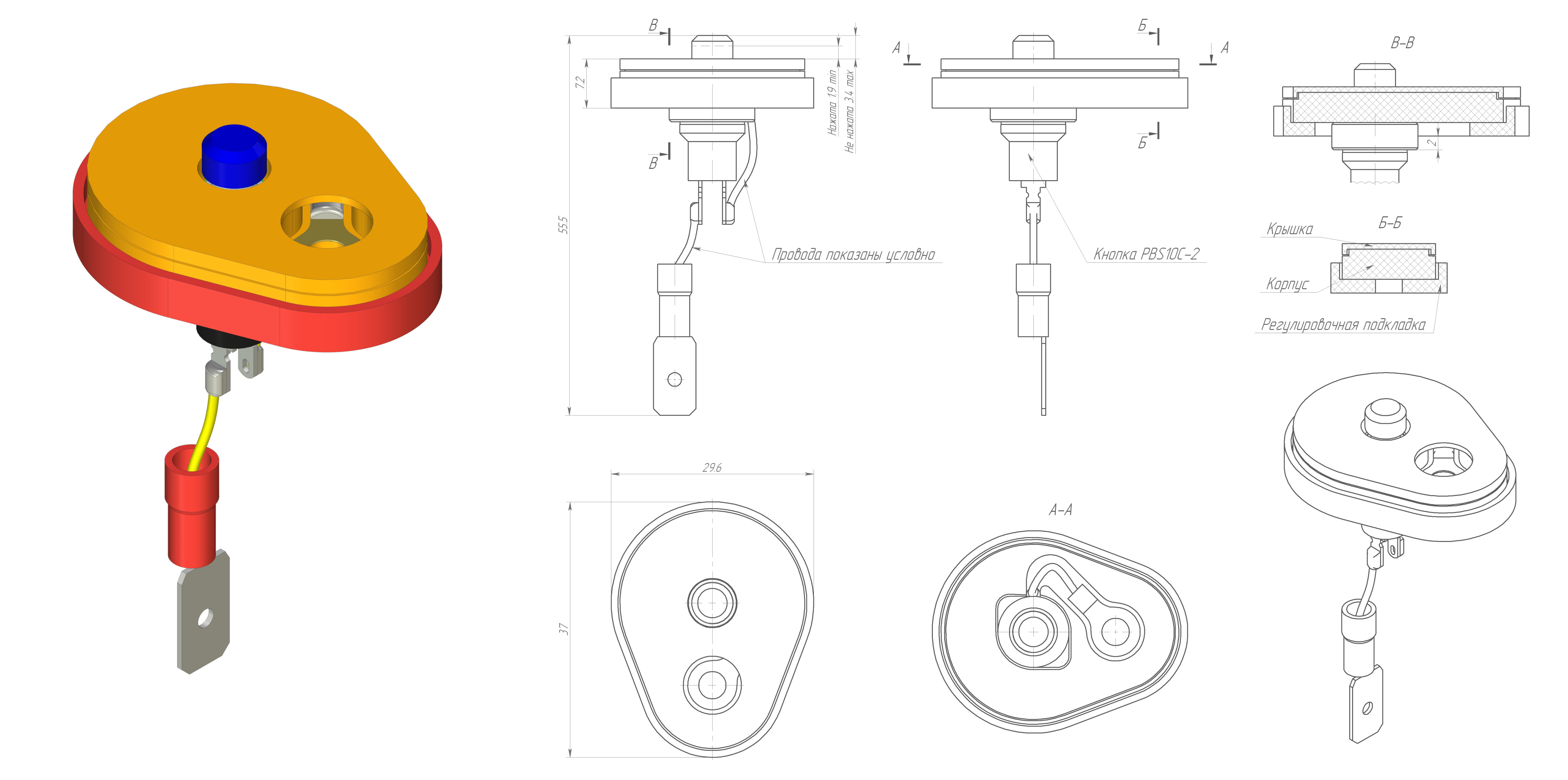 Ну раз уж был изобретен выключатель на герконе, то почему бы не изобрести на кнопке. Вышло так, что я наткнулся на кнопочку PBS10C-2 в своём хозяйстве. Не то чтобы я не знал, что они у меня есть, я не знал, что среди них в хозяйственных припасах имеются размыкающие. Кнопочка эта хороша тем, что она и не маленькая, и не большая, а как раз такая, какая нужно, чтобы попробовать её использовать в качестве концевого выключателя. К очевидным преимуществам отношу лёгкость нажатия (у заводских концевиков адские пружины) и небольшой размер пиптика. Но есть у этих кнопок минус - ход всего 1,5 мм. Этого, конечно, достаточно, но хотелось бы ещё немного иметь в запасе.