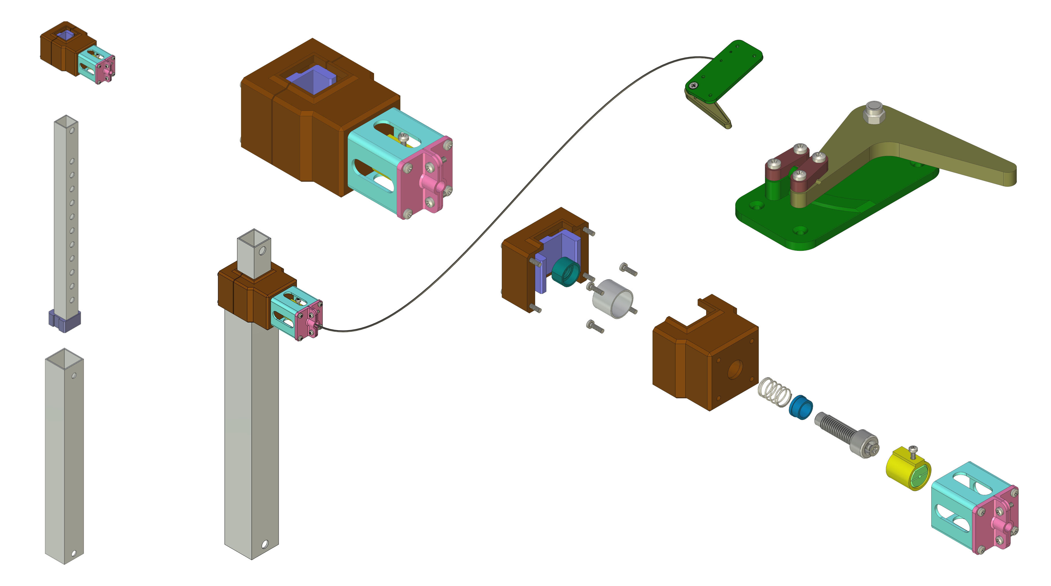 Ладно, речь не о том, а о применении печати при отработке технических решений. Решили мы как-то заменить актуатор вот такой штуковиной. Смысл прост: оттянул рычажок, фиксатор вышел из отверстия, отпустил рычажок, переместил, фиксатор защёлкнулся в другое отверстие. Зачем? Для этой хреновины.