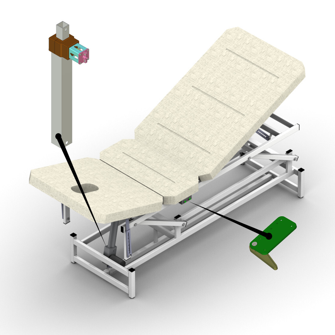 Шарниры опор, к слову, сделали на подшипниках качения и тоже не без пластика. Это оказалось очень удачным и недорогим решением, которое навсегда избавило огромные столы для реабилитации малоподвижных пациентов от скрипов.